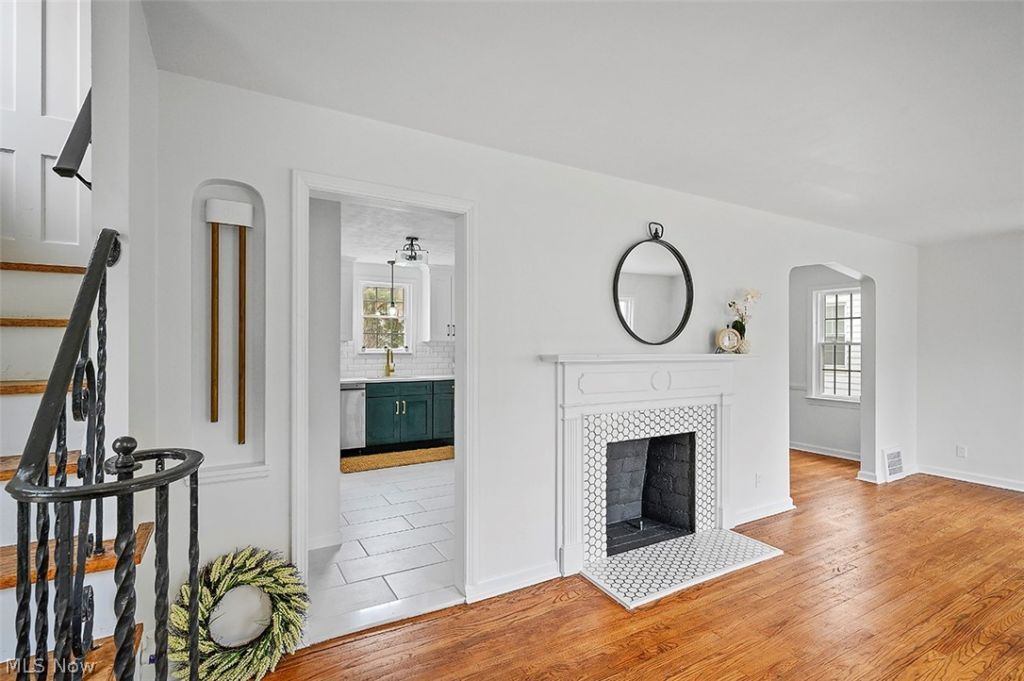 Charming 3bed, 1.5 bath Cleveland Hts Colonial! tons of natural light, decorative fireplace w/ marble tile, spacious and open floor plan, beautiful hardwood floors and built in cabinetry throughout the first and second floor. Contemporary kitchen with Quartz countertops, timeless finishes and fixtures, tile backsplash, and breakfast bar. First floor powder room. Second floor features 3 generous sized bedrooms w/ ample closet space, full bath with tile tub surround, XL finished 3rd floor w/ high ceilings - would make a perfect office space or flex space, partially finished basement for extra living space and launry area. 2 car garage, central air!